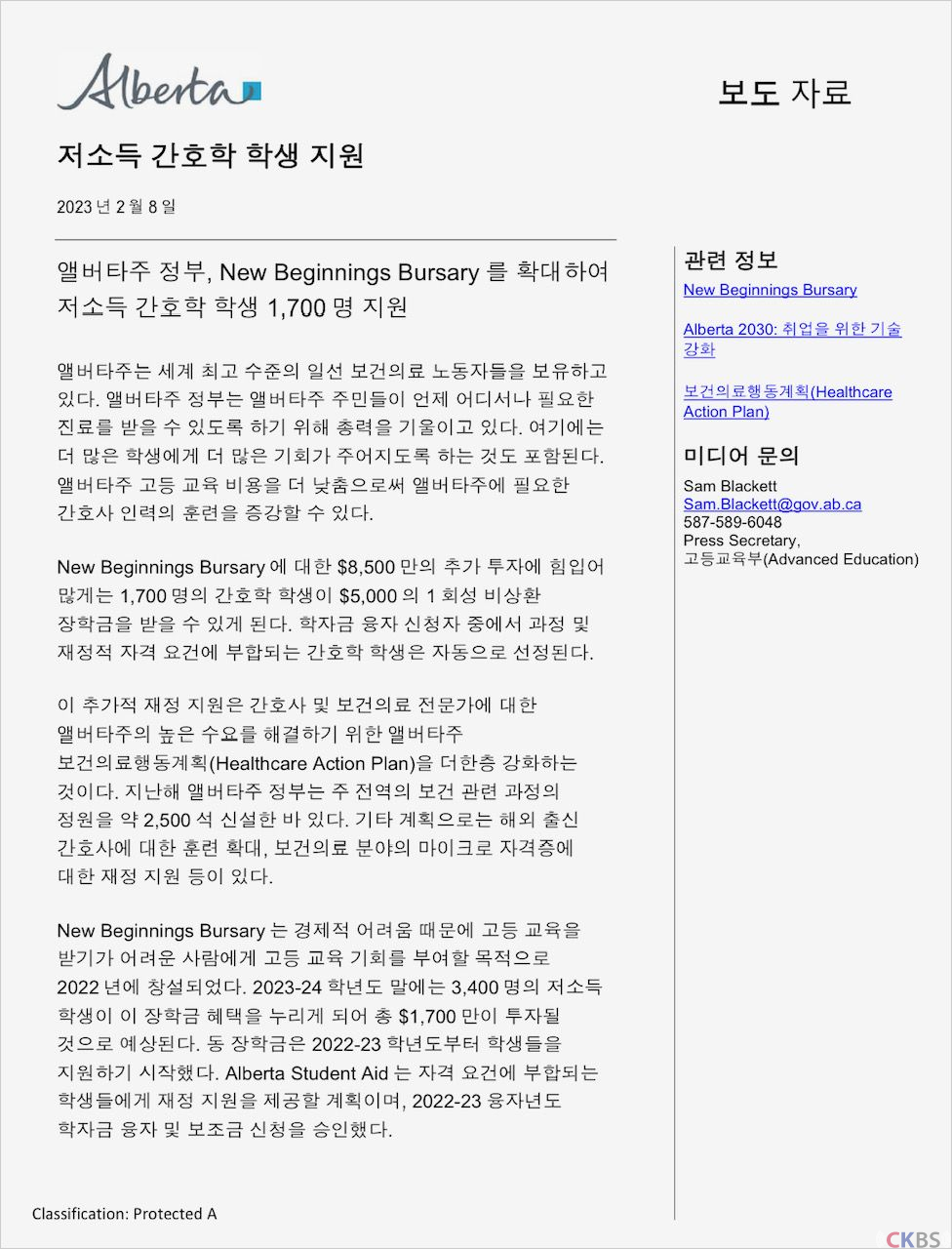 이전글 : 100만 알버타 주민에게 제공되는 지원금