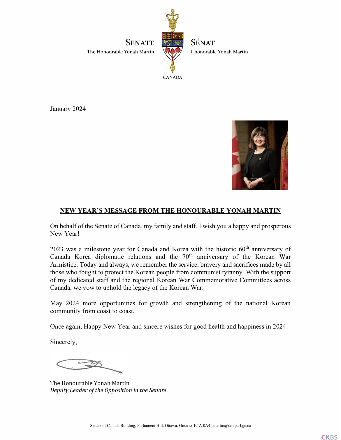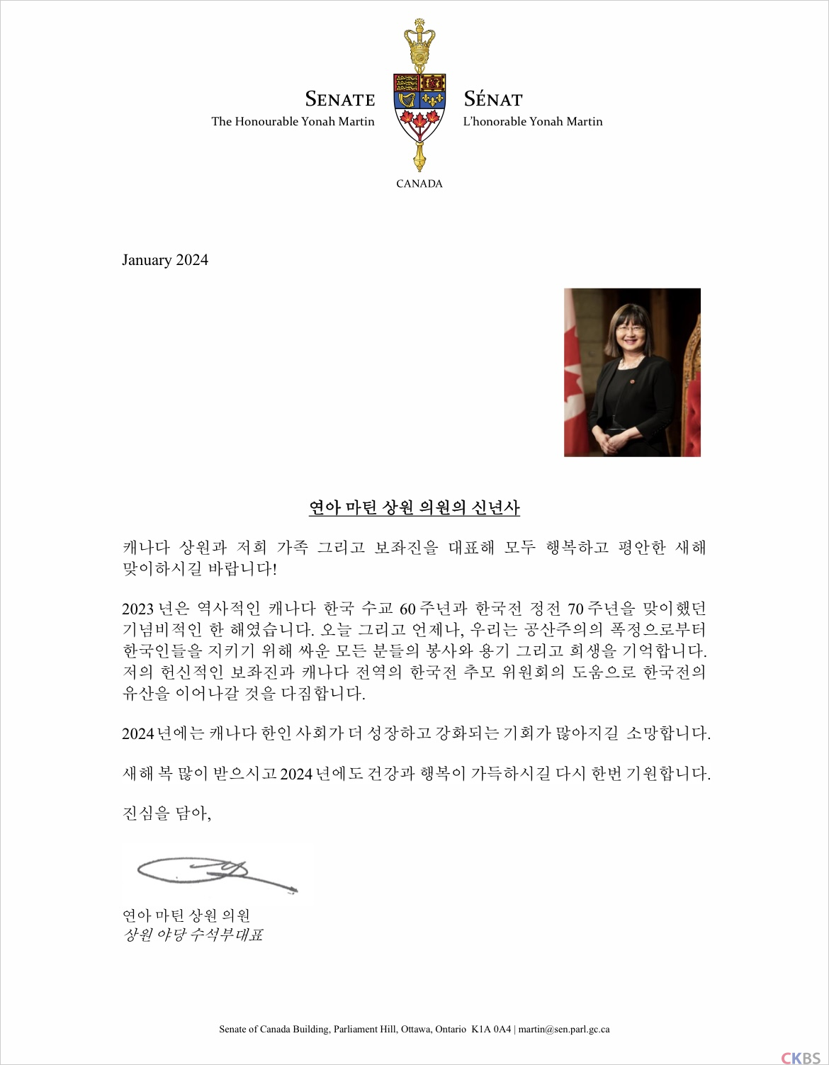 연아마틴 상원의원 신년사